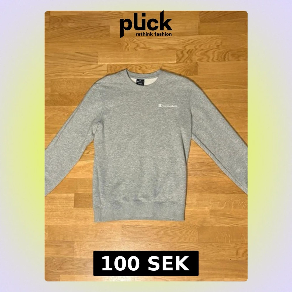 Jag säljer min grå Champion-tröja i storlek S. Den är sparsamt använd och i okej skick – fortfarande mjuk och skön att ha på sig. Perfekt som vardagströja eller till träning!