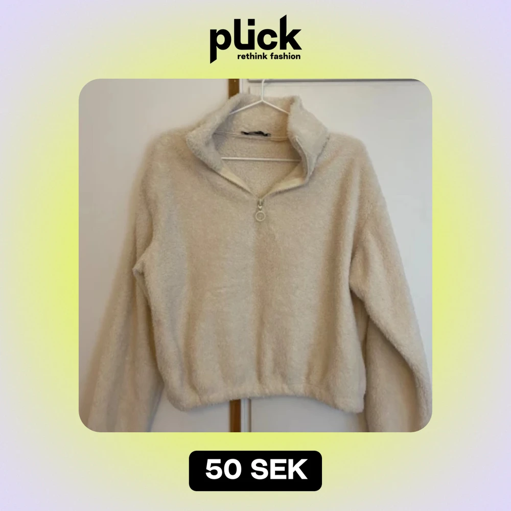 Mysig beige lurvig tröja från Chiquelle i storlek XS. Perfekt för kyliga dagar nu på hösten. Tröjan har en halv dragkedja framtill och en hög krage för extra värme. Den är långärmad och är något kortare med resår nertill.