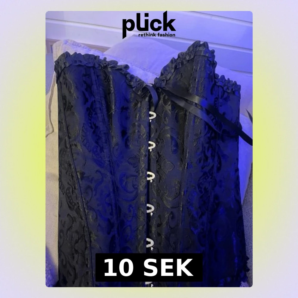Corset tröja - Det är som en inbyggd korsett i tröjan ( inga snören där bak). Den kommer inte t användning längre. Det är några defekter som små hål vid handen och även att korsetten gått lite sönder 🫶skriv vid frågor