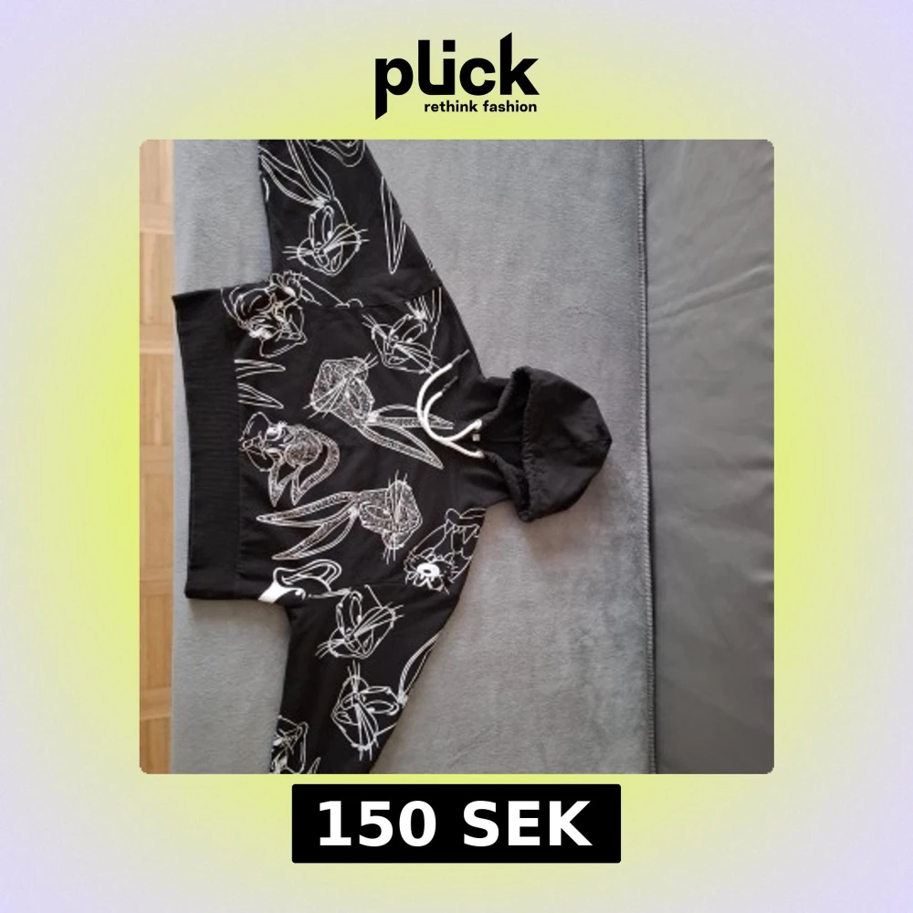 Säljer en svart hoodie med ett coolt tryck av en tecknad figur i vitt. Hoodien är tillverkad av 100% bomull och har en justerbar dragsko i huvan. Perfekt för en avslappnad stil!