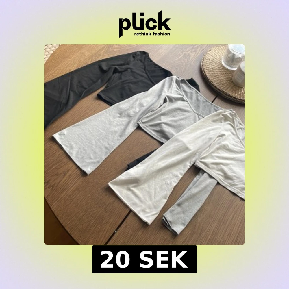 Säljer tre långärmade toppar från SHEIN i färgerna svart, grå och vit. Alla har en croppad passform och är tillverkade i mjuk bomullsmix. Perfekta att matcha med jeans eller kjol för en enkel och stilren look.