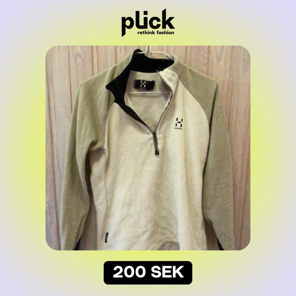 Säljer en supermysig beige fleece tröja från Haglöfs. Perfekt för kyliga dagar med sin halvdragkedja och mjuka material. Den har en stilren design med svart krage och Haglöfs-logga på bröstet. Passar perfekt för höst- och vinteräventyr! 🍂❄️