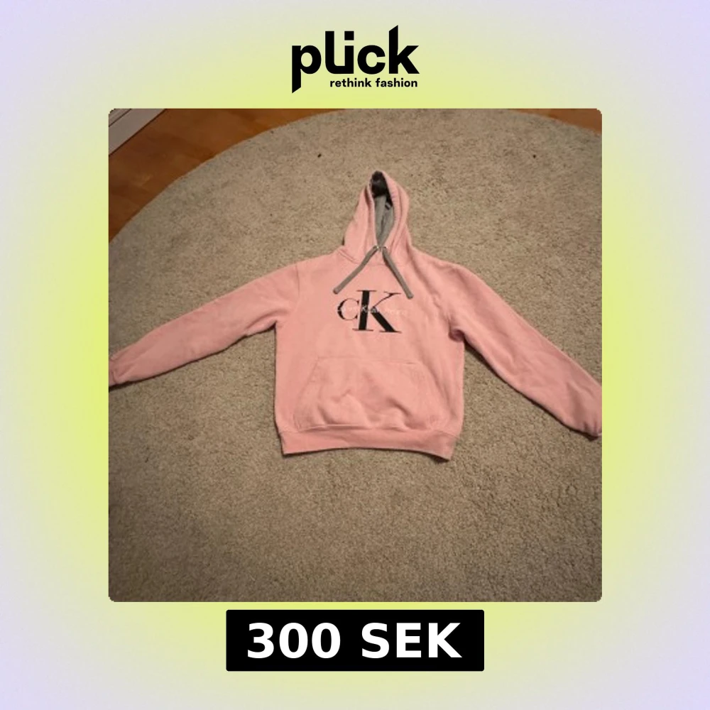 Mysig rosa hoodie med stor Calvin Klein logga på bröstet. Tröjan har huva med grå insida och dragsnören samt en stor magficka framtill.