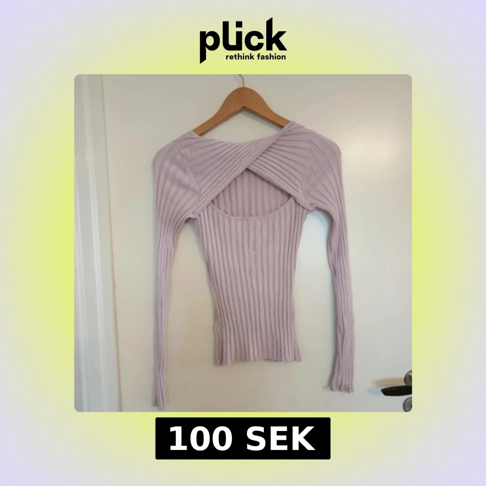 Säljer en ljuslila ribbad tröja med långa ärmar. Tröjan har en rund halsringning och är tillverkad av en mjuk viskosblandning. 💜