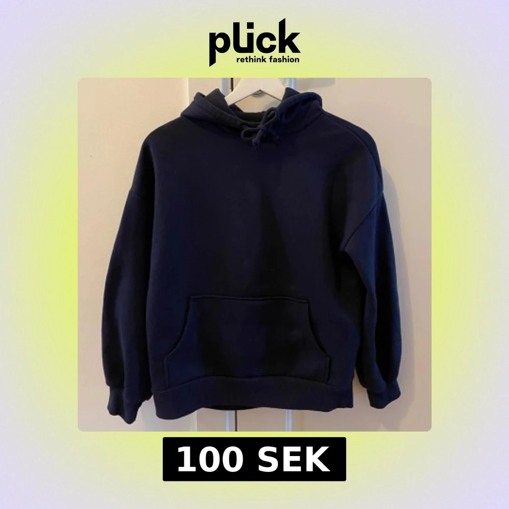 Säljer en mörkblå hoodie från H&M Divided i storlek XXS. Den har en klassisk design med en stor ficka framtill och justerbar huva med dragsko. Perfekt för många tillfällen.