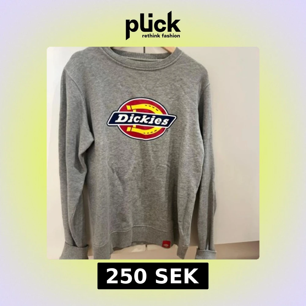 Säljer en grå sweatshirt från Dickies i 100% bomull. Tröjan har klassisk Dickies-logga i rött, gult och blått framtill, rund hals och långa ärmar. Perfekt för dig som gillar streetwear och enkel stil.