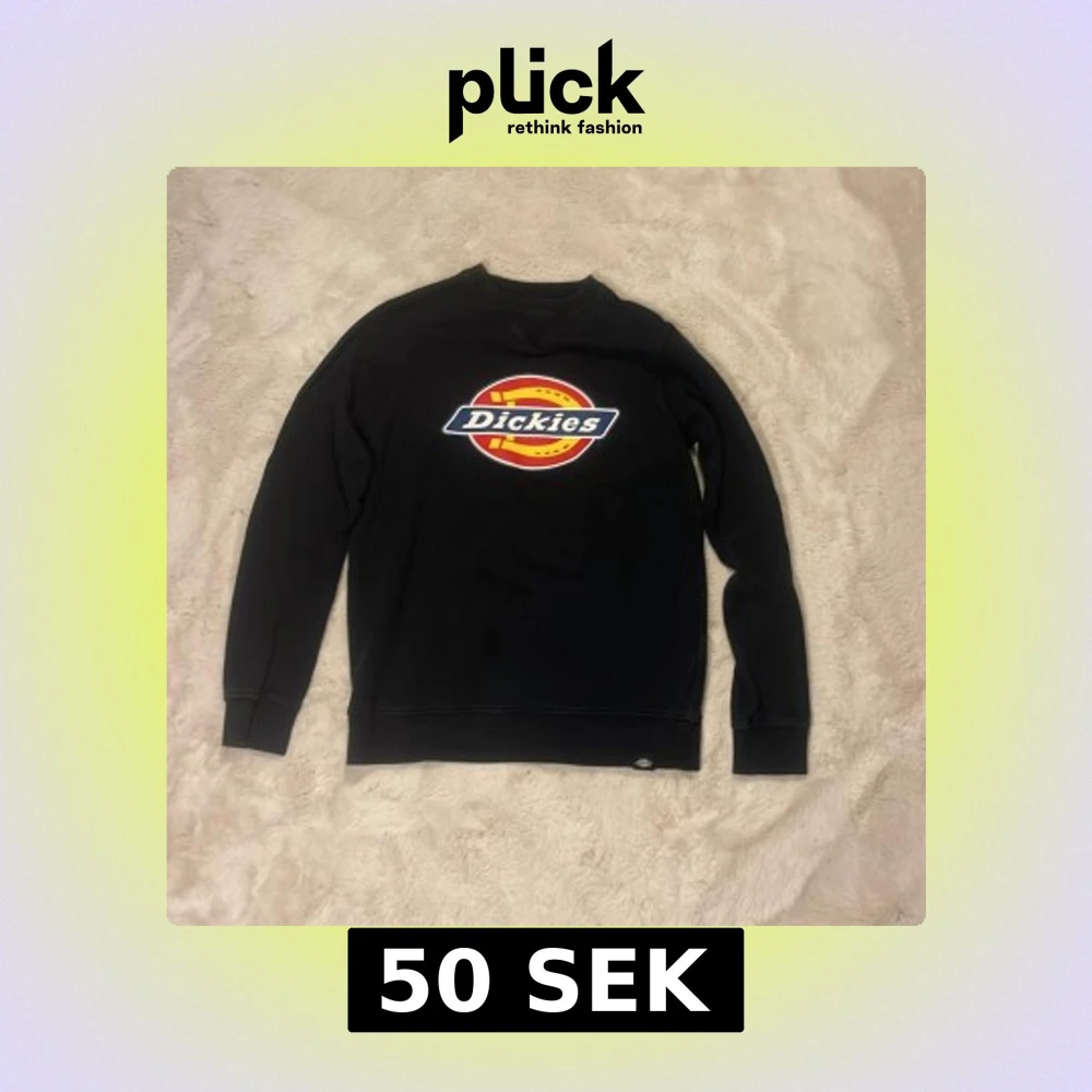 Svart sweatshirt från Dickies i storlek small. Tröjan har en stor färgglad Dickies-logga på bröstet och är långärmad med ribbade muddar. Perfekt för dig som gillar streetwear och vill ha en enkel men snygg look.