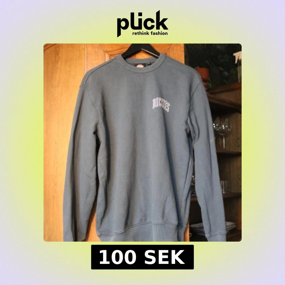 Snygg mörkgrå/blå sweatshirt från Dickies i storlek XS. Tröjan har rund halsringning, långa ärmar och vit/svart Dickies-logga på bröstet. Tillverkad i mjuk bomullsmix med ribbade muddar vid ärmslut och nederkant. Perfekt för en chill och stilren look.