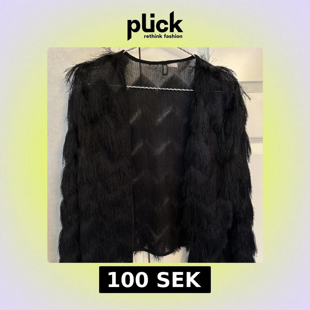 En tunn, festlig kofta med fransar. Stl S. H&M Divided, knappt använd så den är i jättefint skick!