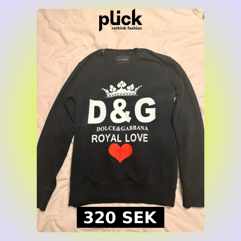 Svart långärmad tröja från Dolce & Gabbana med stor vit print på bröstet, krona och texten 'D&G Royal Love'. Rött hjärta nedtill ger en cool kontrast. Rund hals och ribbade muddar. Perfekt statement piece för dig som gillar designer.