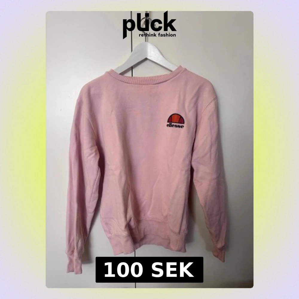 Säljer en ljusrosa sweatshirt från Ellesse med klassisk logga på bröstet. Tröjan har rund hals, långa ärmar och ribbade muddar vid ärmslut och nederkant. Perfekt för dig som gillar sportig och avslappnad stil.