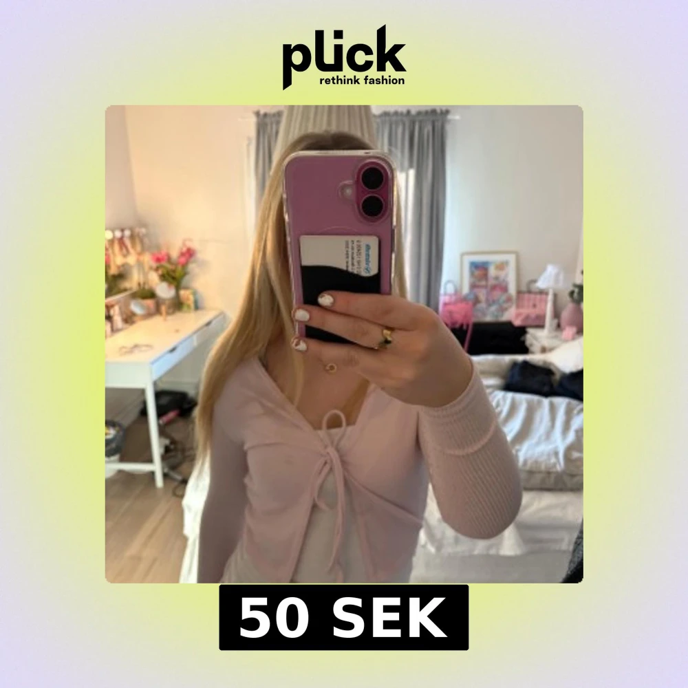 Säljer en söt rosa ribbad kofta från PrettyLittleThing. Den har långa ärmar och knytning framtill, perfekt för en stilren look. Passar bra till både jeans och kjol. 💖