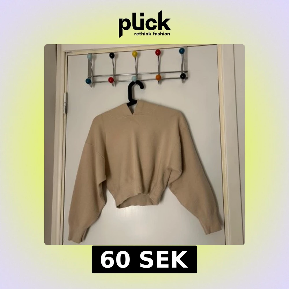 Säljer en beige hoodie från ASOS DESIGN. Den är croppad med långa ärmar och har en bekväm huva. Perfekt för en avslappnad stil.