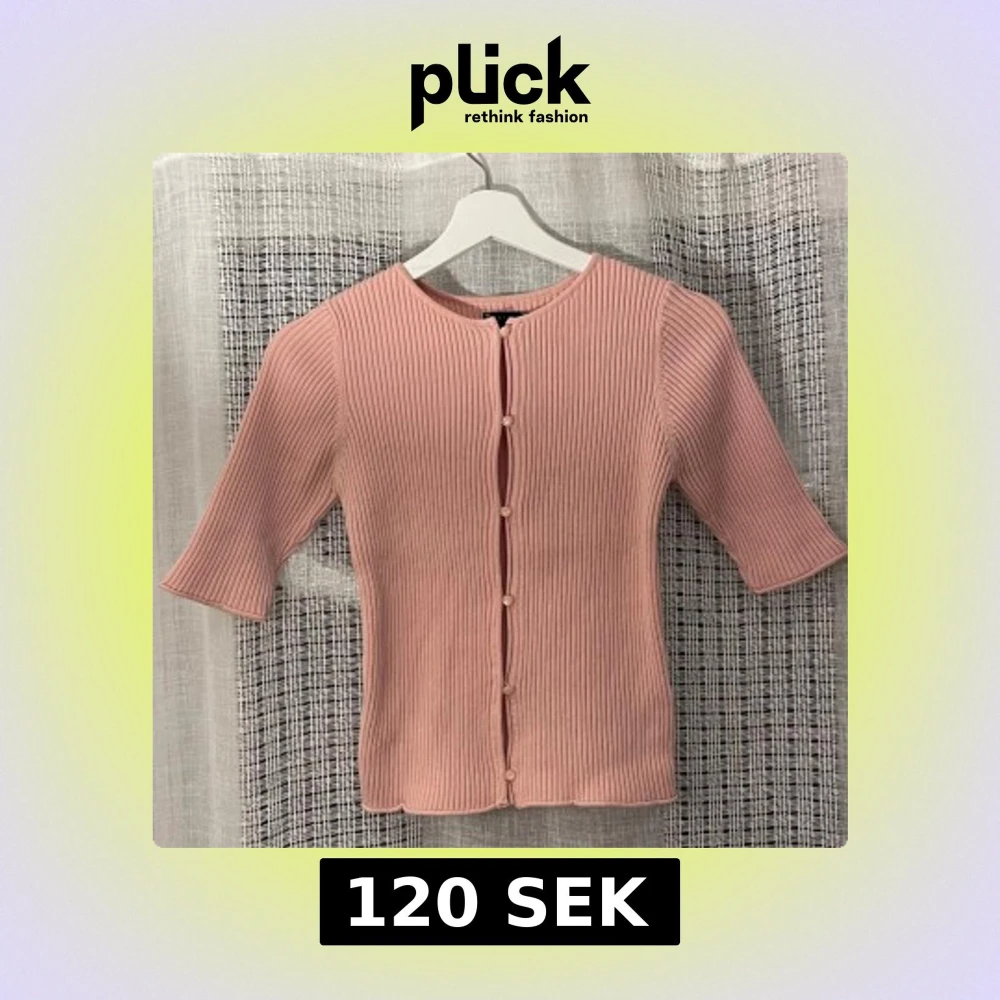 Säljer en söt rosa ribbad kofta från ASOS DESIGN med knappar framtill. Super gulligt ☺️✨.