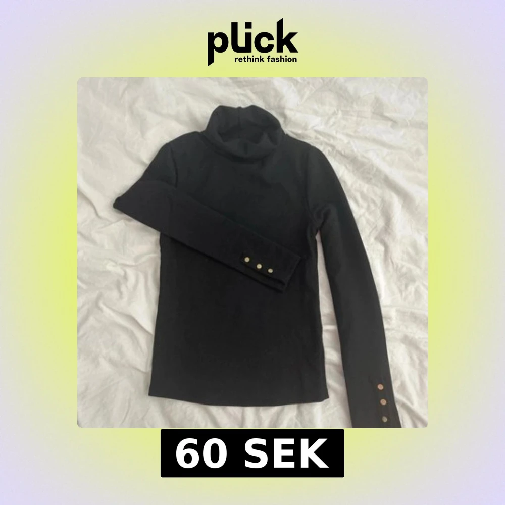Svart polotröja från ASOS DESIGN med lång ärm och snygga guldfärgade knappar vid ärmsluten. Perfekt för dig som gillar stilrena och klassiska plagg med en liten twist. Polokragen ger extra cozy vibe och passar till många olika looks.