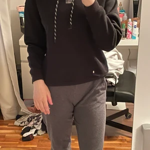 Svart hoodie med citat på bröstet från New yorker.