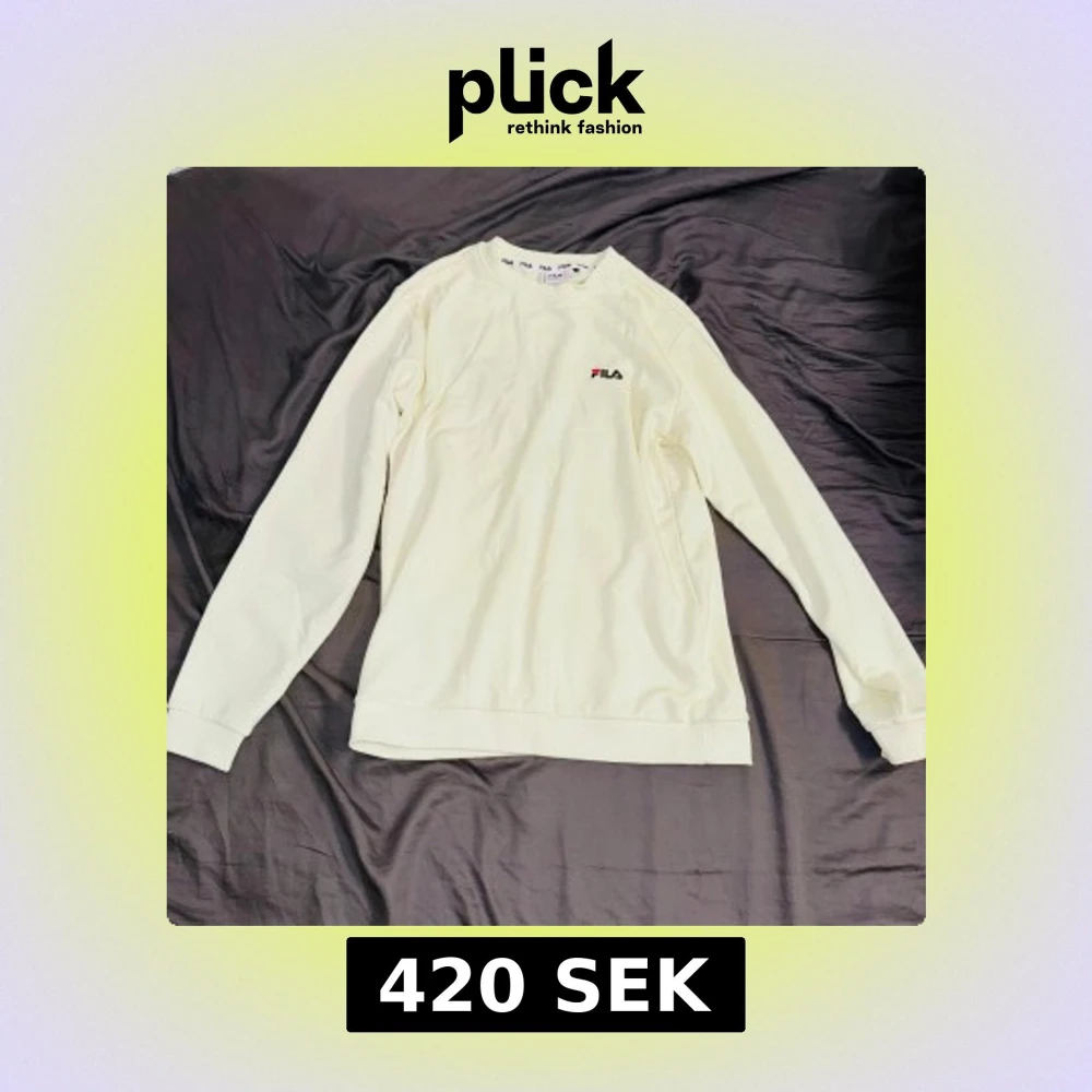 Vit långärmad tröja från FILA med liten broderad logga på bröstet. Klassisk rund halsringning och ribbade muddar vid ärmslut och nederkant. Perfekt för en clean och sportig look.