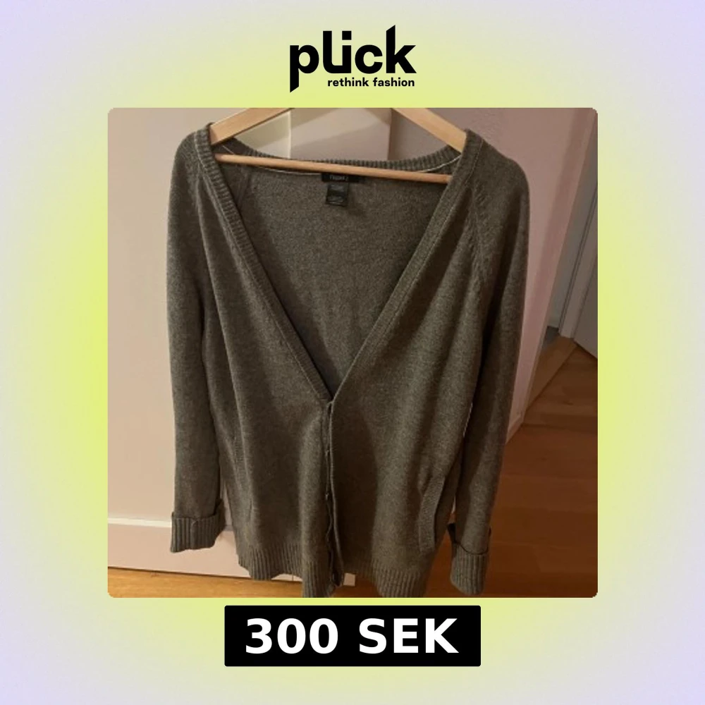 Säljer en stilren grå kofta från Filippa K i storlek L. Koftan är tillverkad av en mjuk blandning av lammull och bomull, vilket gör den perfekt för kyligare dagar. Den har en v-ringad design och ribbade muddar vid ärmslut och nederkanten.