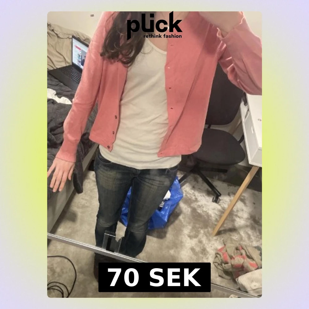 Söt rosa cardigan med rund halsringning och knappar framtill. Långärmad modell i mjukt, tunt material som passar perfekt för lager på lager. Enkel och stilren design utan synligt märke.