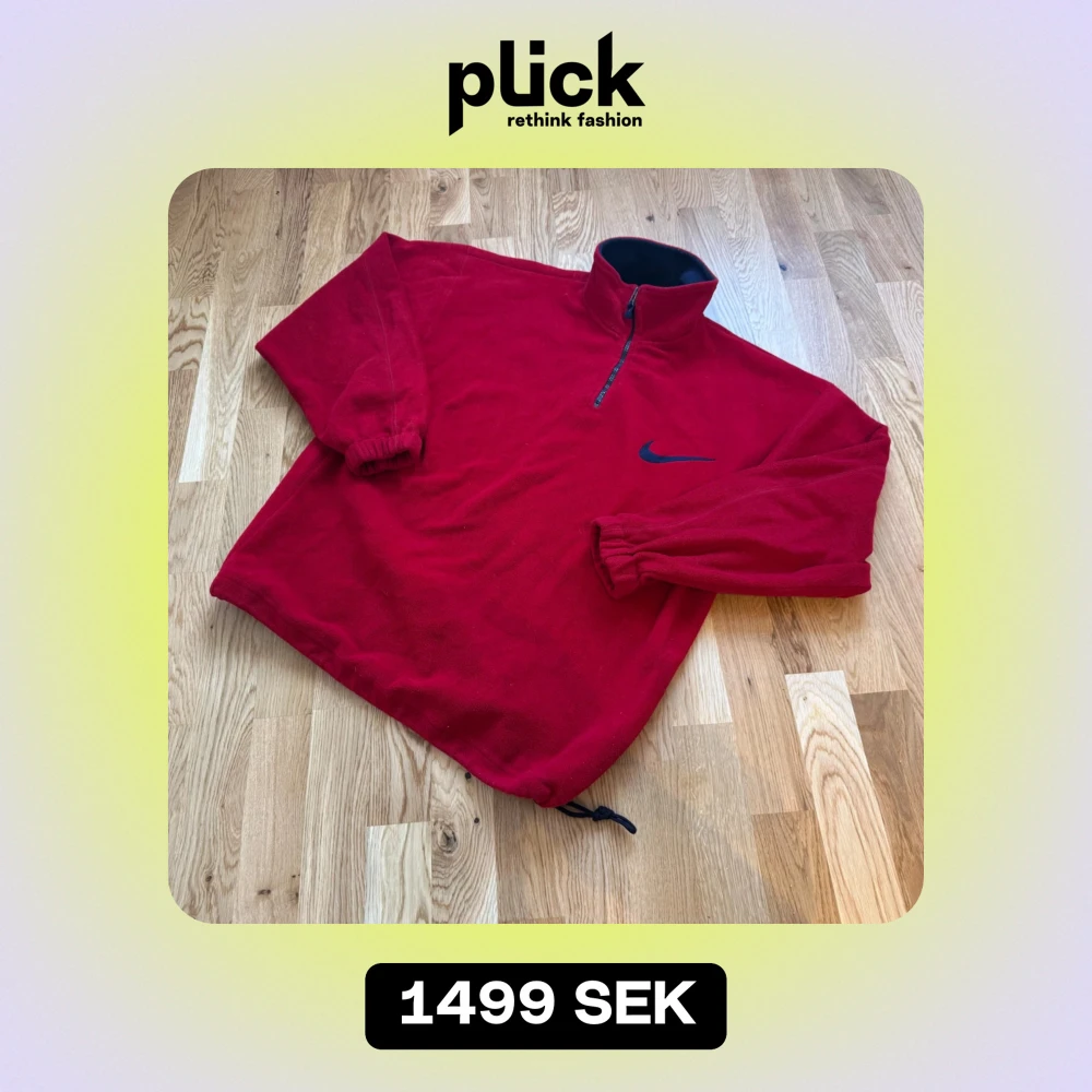 Säljer en röd fleece tröja från Nike i storlek XL men sitter som L. Den har en halv dragkedja och elastiska muddar vid ärmsluten. Perfekt för kyliga dagar med sin mjuka och varma känsla. Nike-loggan är broderad i svart på bröstet. Passar både för träning och vardag.