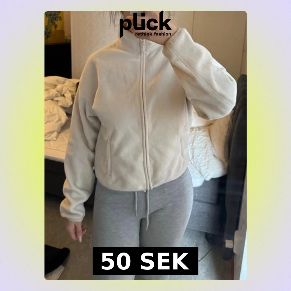 Mysig beige fleecejacka med hög krage och hel dragkedja framtill. Jackan har två sidofickor med dragkedja och en avslappnad passform.