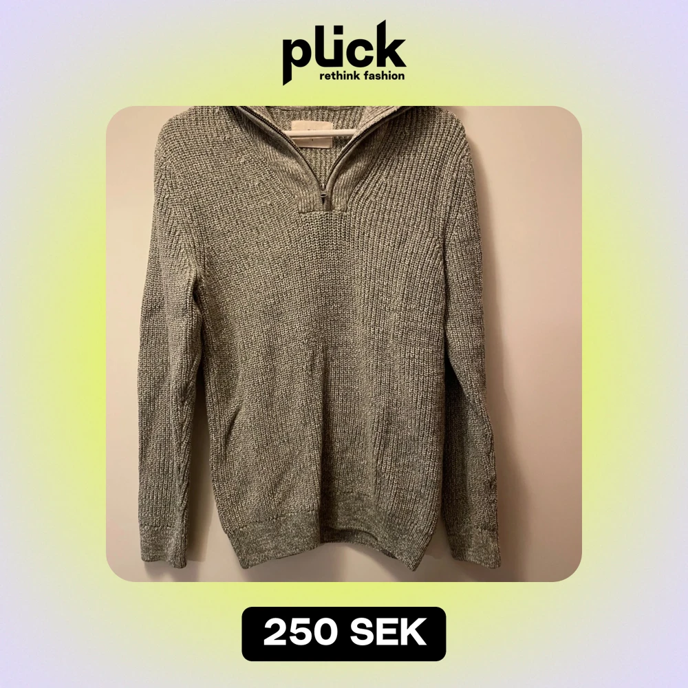 Säljer en grön stickad tröja med dragkedja vid halsen från det brittiska märket Folk. Nypris ca 2,000kr. Size 3 (motsvarande M).