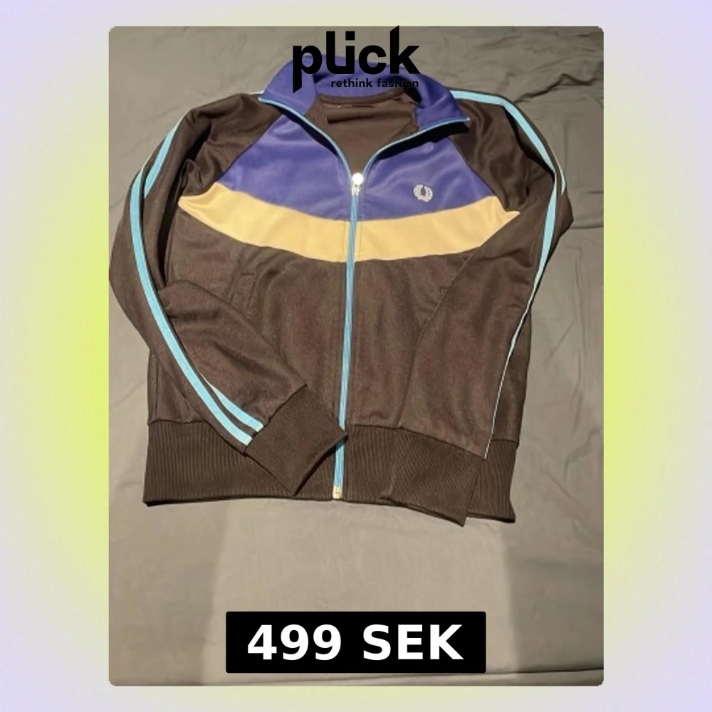 Snygg retroinspirerad track jacket från Fred Perry i brunt med blå och beige paneler samt blå ränder längs ärmarna. Dragkedja framtill, ribbade muddar och klassisk logga på bröstet. Perfekt för en sportig och avslappnad stil.