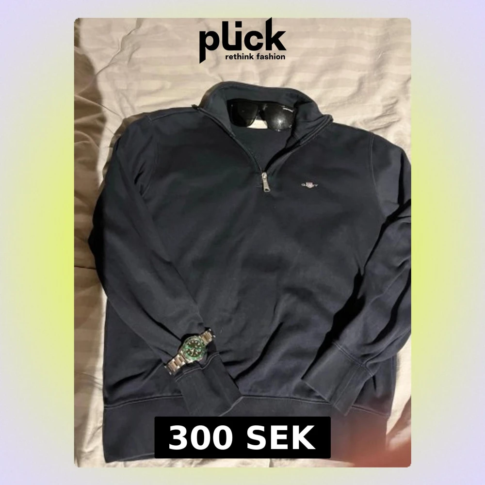 Snygg marinblå halvzip-tröja från Gant med broderad logga på bröstet. Tröjan har hög krage med dragkedja och ribbade muddar vid ärmslut och nederkant. Perfekt för en stilren och avslappnad look.