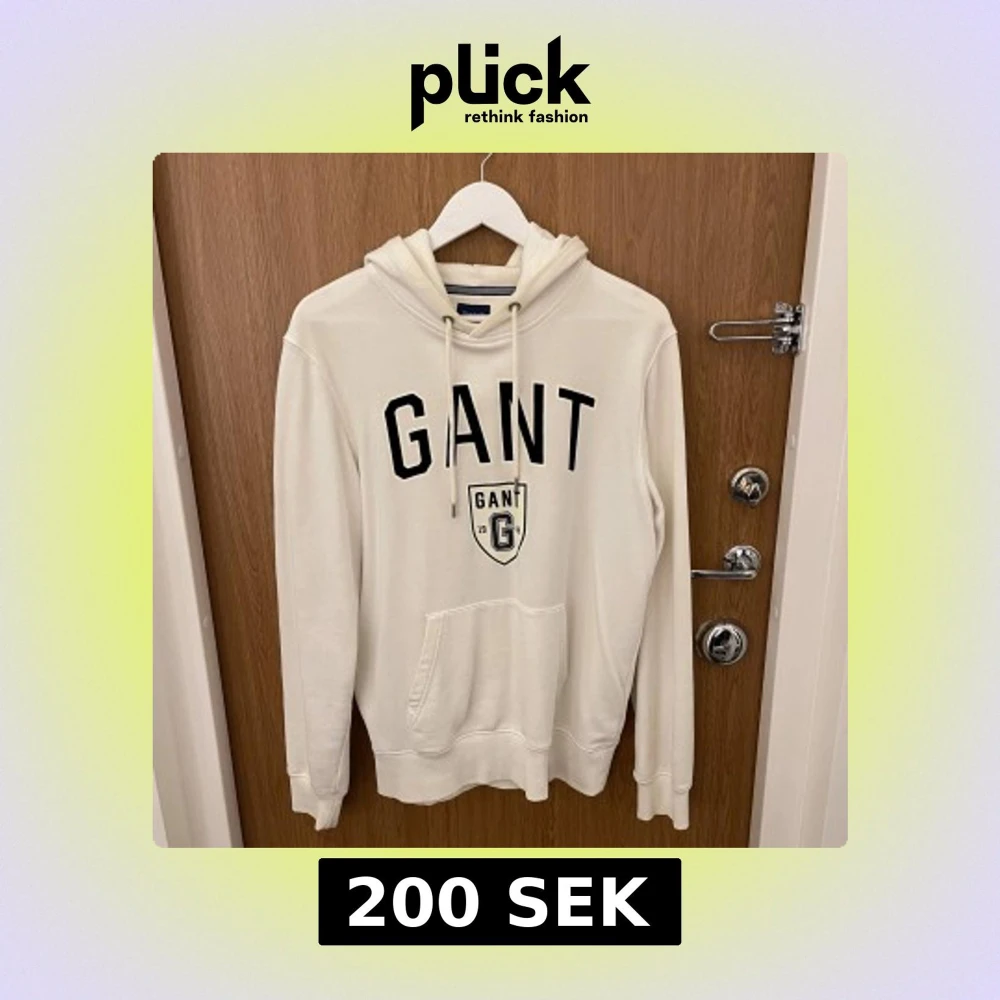 Snygg vit hoodie från Gant med svart logotyp och sköldtryck framtill. Tröjan har huva med snörning och en stor magficka. Perfekt för dig som gillar klassisk och sportig stil.