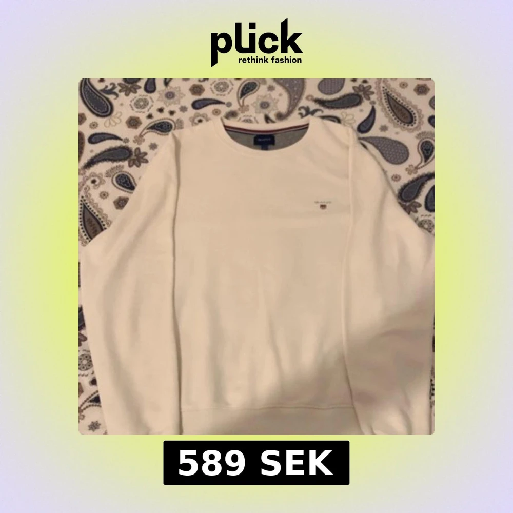 Säljer en stilren vit sweatshirt från Gant med diskret logga broderad på bröstet. Tröjan har rund hals och långa ärmar, perfekt för dig som gillar klassisk och enkel stil. Materialet är mjukt och skönt, passar till många olika outfits.