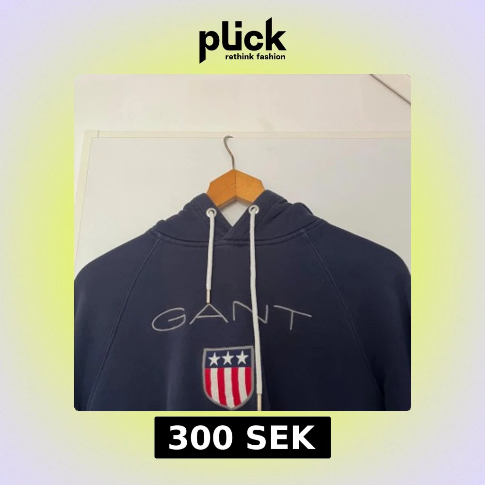 Säljer en marinblå hoodie från GANT med broderad logga och sköld på bröstet. Tröjan har vit snörning i huvan och är tillverkad i mjuk bomull och polyester. Perfekt för dig som gillar klassisk och sportig stil. Priset kan diskuteras