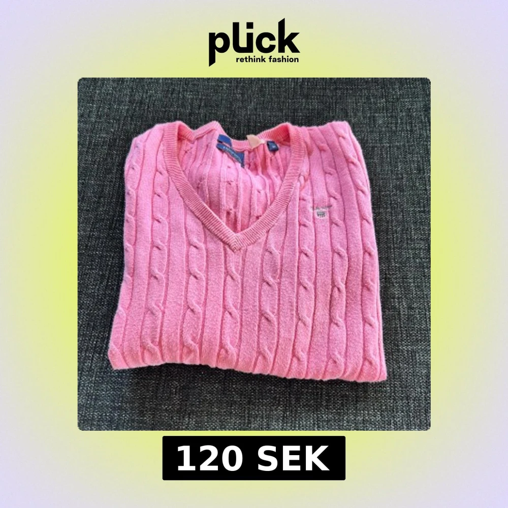 Supersnygg rosa kabelstickad tröja från GANT med v-ringning och broderad logga på bröstet. Tröjan har lång ärm och klassisk passform. Tillverkad i mjuk bomull som känns skön mot huden. Använd men i bra skick. Storlek M