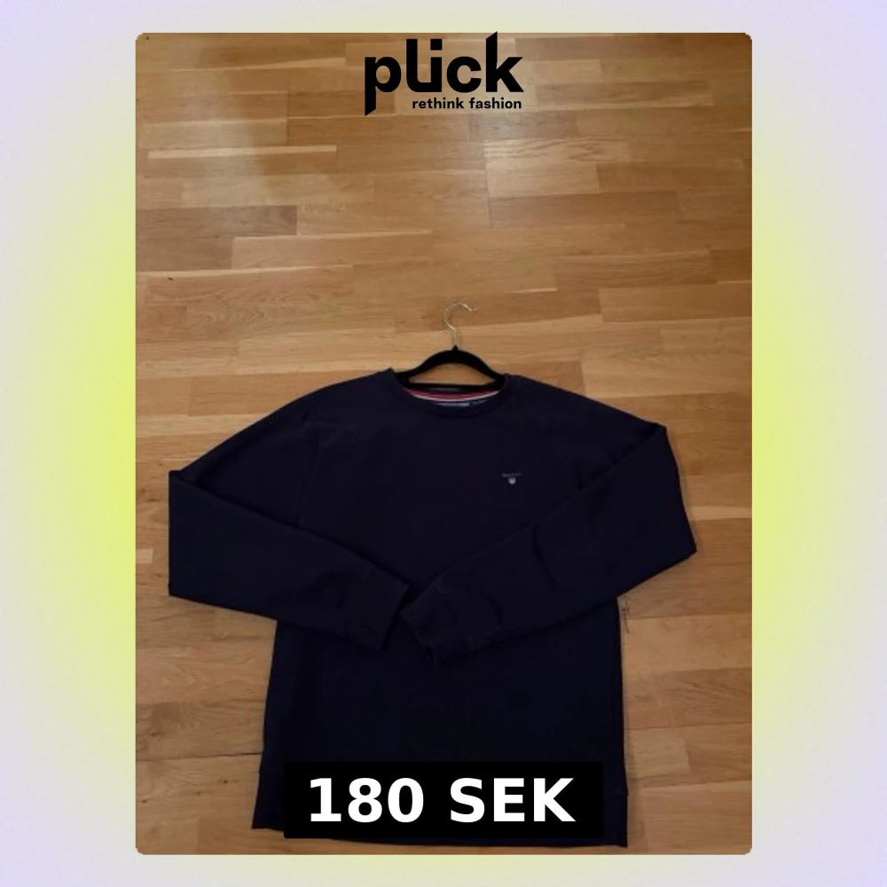 Klassisk mörkblå sweatshirt från GANT med rund halsringning och diskret logga broderad på bröstet. Tröjan har ribbade muddar vid ärmslut och nederkant samt en snygg detalj med röd och vit rand på insidan av kragen.