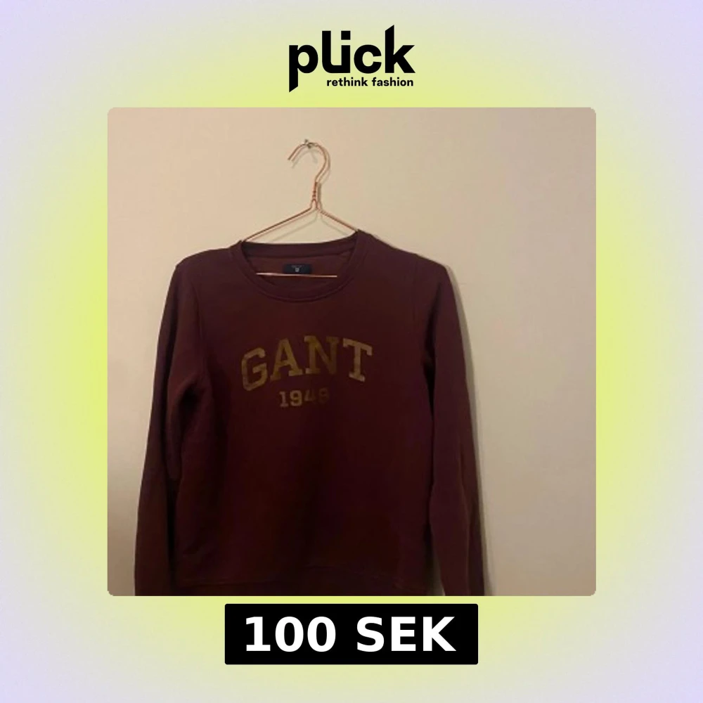 Säljer en långärmad Gant tröja som är vinröd. Knappt använd. Gulldig text som glittrar lite. ordinarie pris är 1000. Säljer den för 100