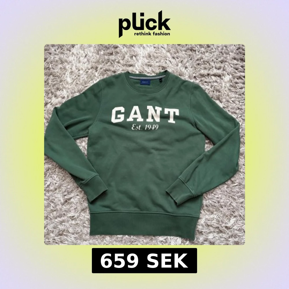 Snygg grön sweatshirt från GANT med vit broderad logga och texten 'Est. 1949' på bröstet.