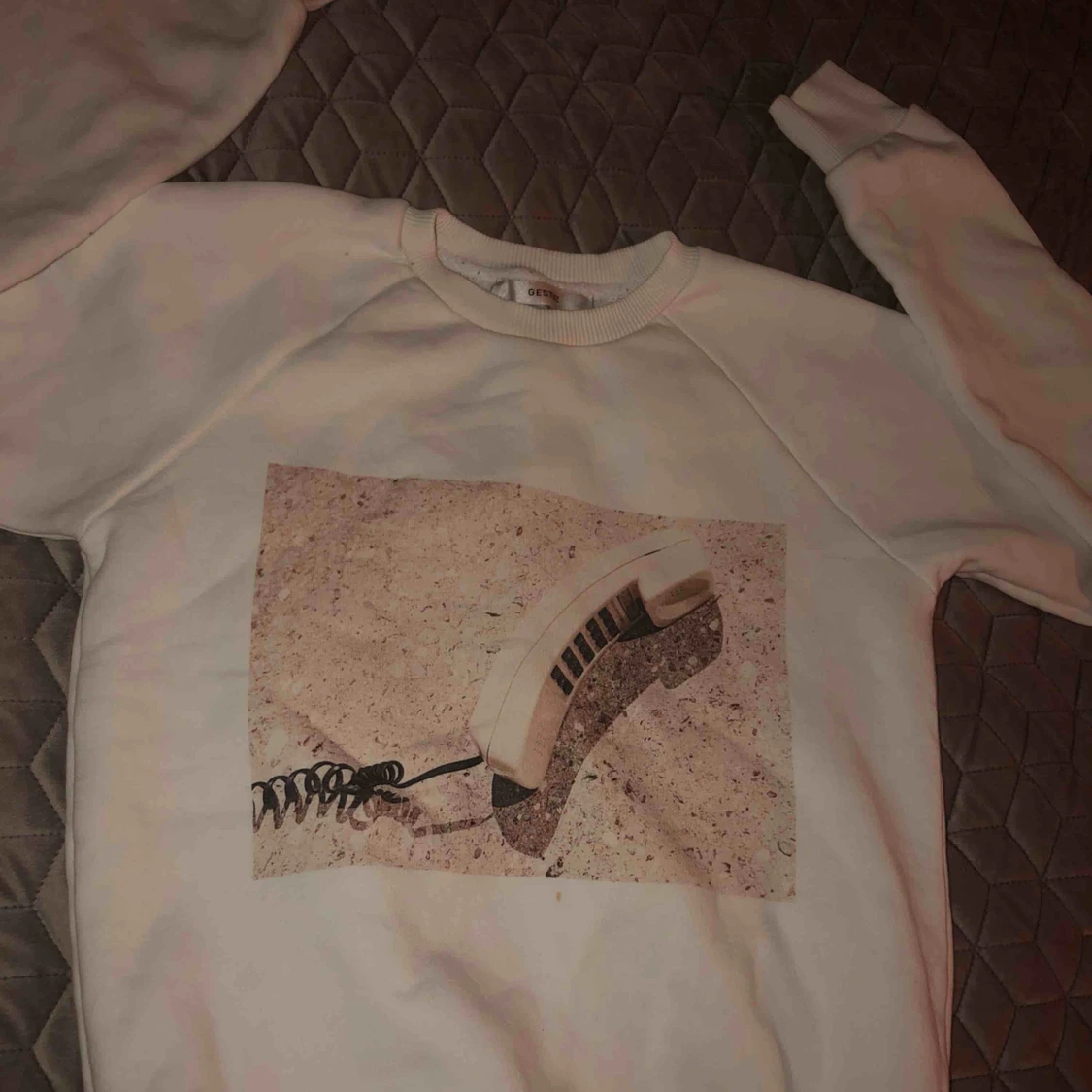 En mysig tjocktröja med ett coolt tryck både fram och bak, är i nytt skick.