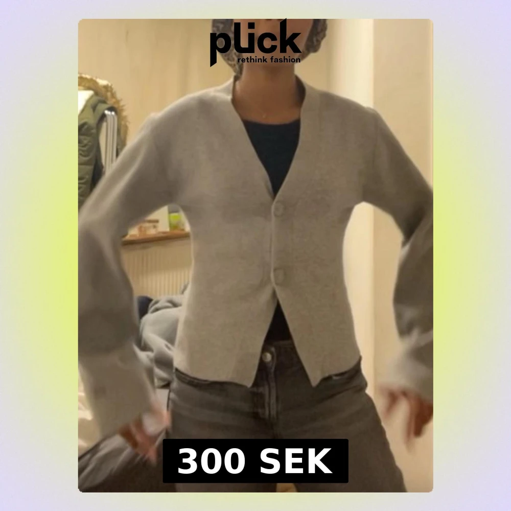 Ljusgrå cropped kofta med knappar