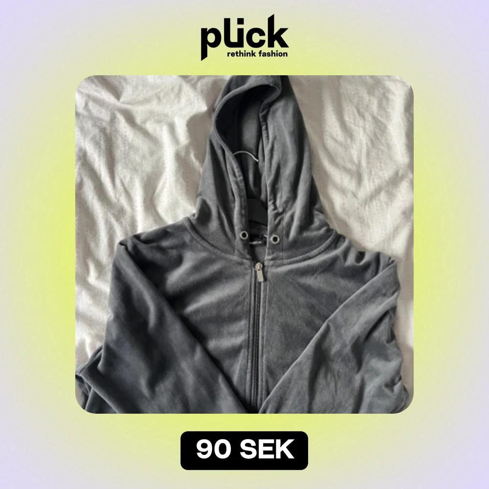 Säljer en supermjuk och stilren grå hoodie i sammet. Den har en dragkedja framtill och en praktisk huva. Perfekt för en avslappnad look eller mysiga dagar hemma. Den har långa ärmar och en normal passform. Fickor framtill för extra bekvämlighet.