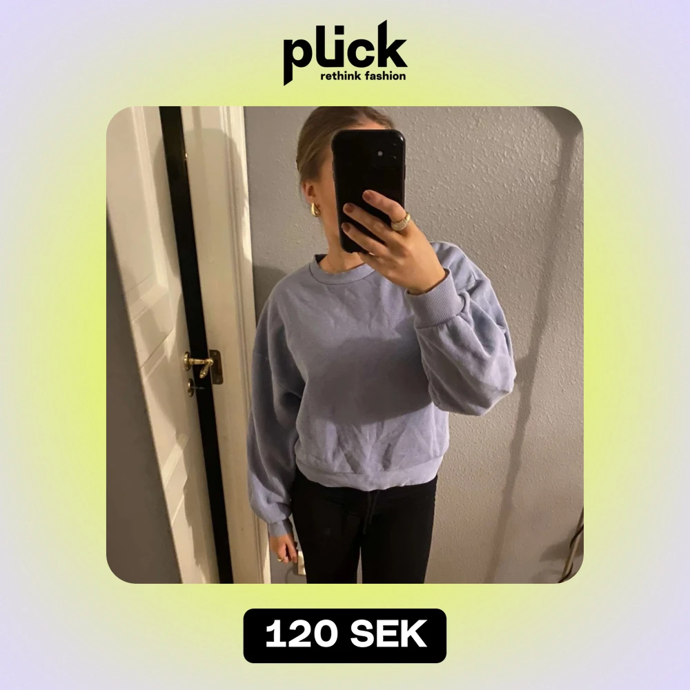 Säljer en supermysig ljusblå sweatshirt i bra skick. med långa ärmar och ribbade muddar vid ärmslut och nederkant. Passar till allt! 💙