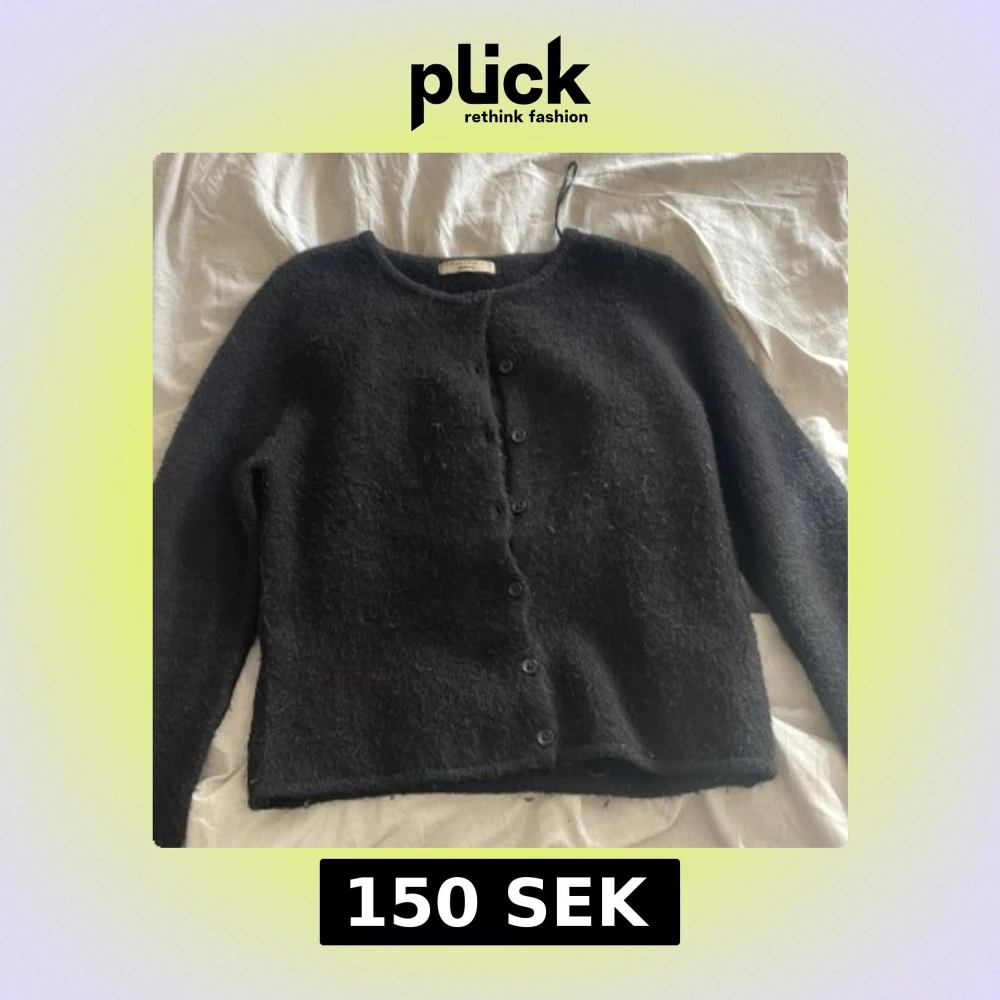 Mysig svart kofta från Gina Tricot. Klassisk rak modell med rund halsringning och knäppning framtill med svarta knappar. Perfekt för lager-på-lager och passar till allt. Långärmad och fluffig textur som ger en chill vibe. Inte super bra skick eftersom den är väldigt nopprig.