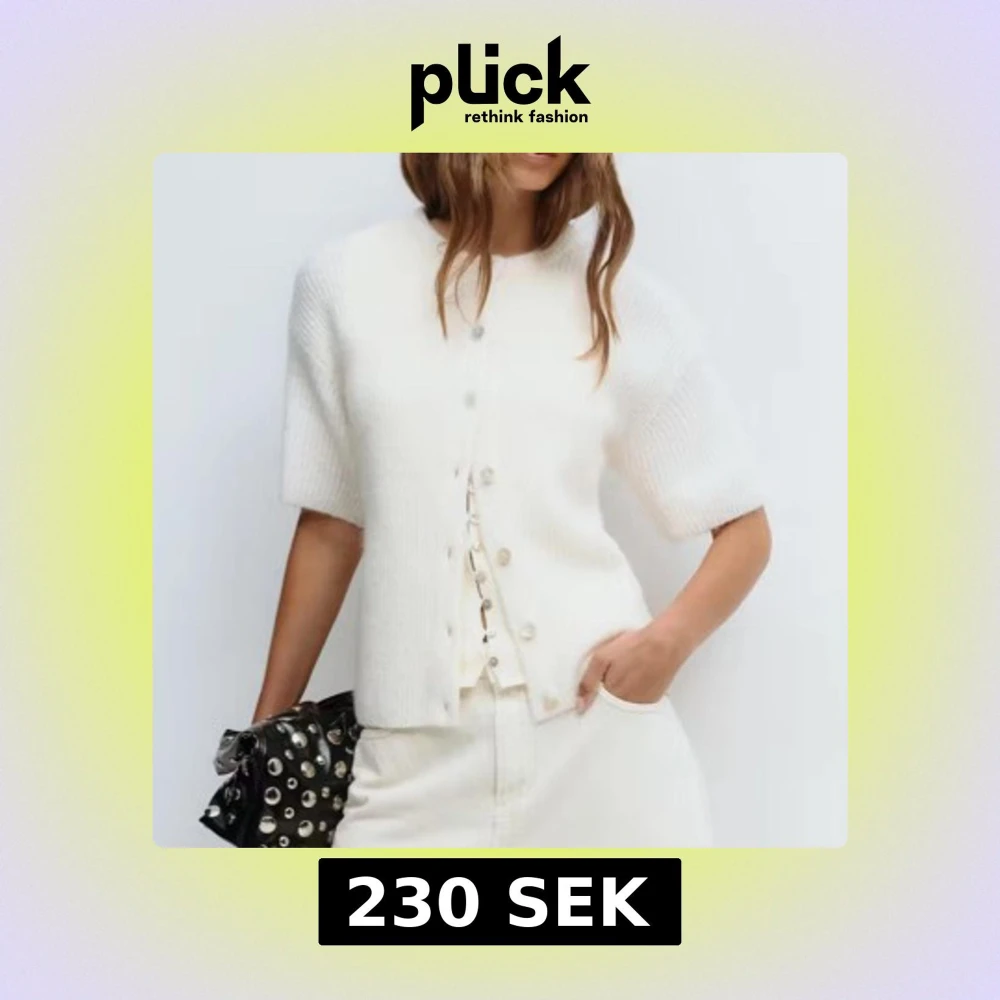 Kortärmad, vit stickad kofta från Gina med knappar framtill. Endast använd en gång, säljer då den ej passade mig☺️