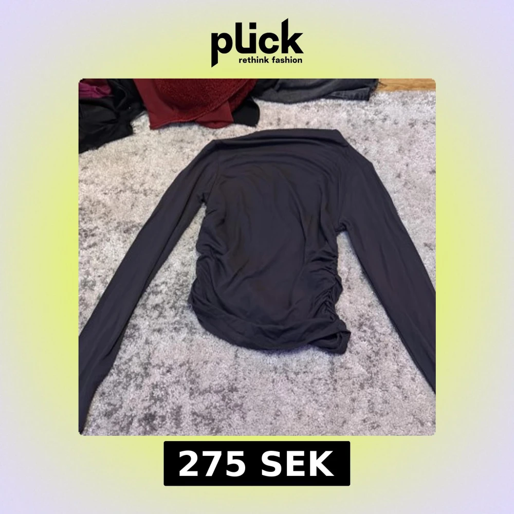 Svart långärmad topp från Gina Tricot med snygga rynkade detaljer längs sidorna. Tunn och stretchig i materialet, perfekt för lager-på-lager eller som statement-piece. Enkel att styla till olika looks. Inte använd