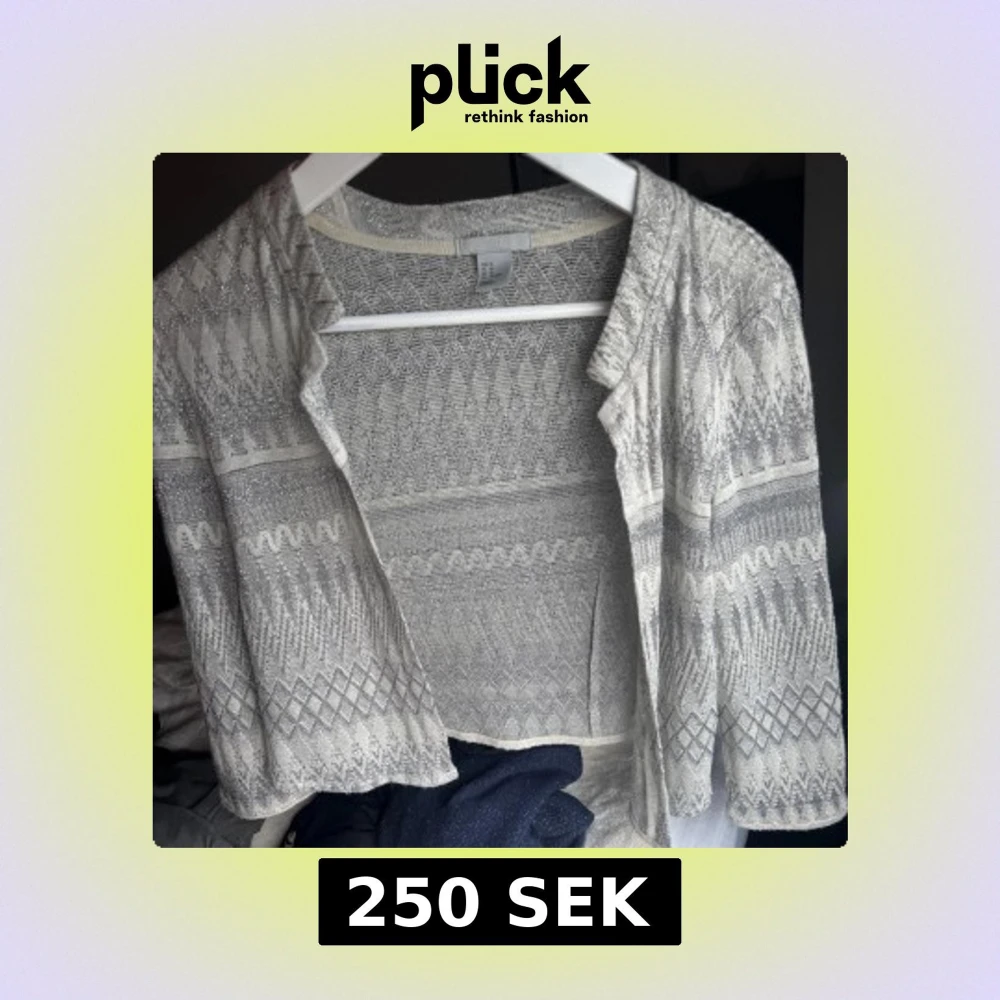 Säljer en glittrig grå kofta med ett detaljerat mönster. Så söt😍💕