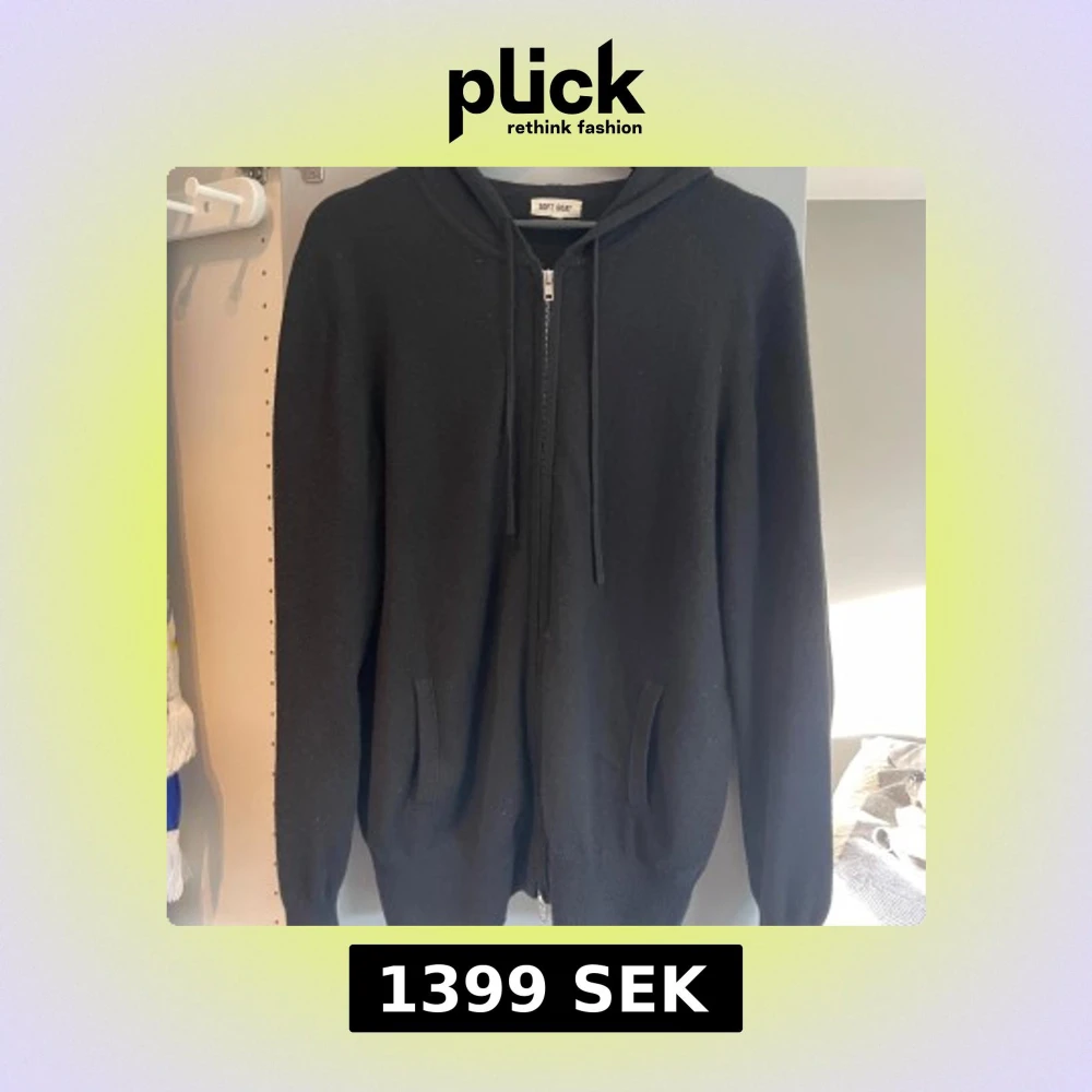 Svart hoodie från Soft Goat i kashmir. Tröjan har dragkedja framtill, huva med snörning och två fickor. Tröjan är använd med i fint skick. Skriv för fler bilder