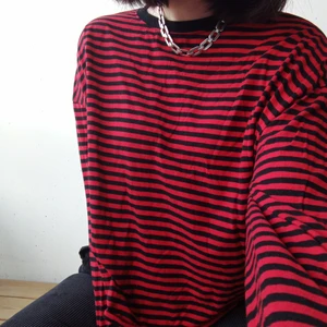 svart och rödrandig tröja från H&M, storlek L. den är lite croppad! nästan helt oanvänd. frakt tillkommer!! tar endast swish<3