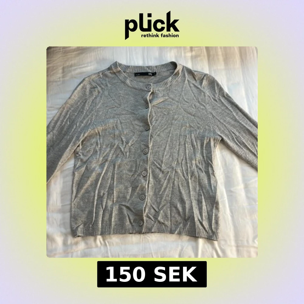 Grå kofta från lager 157. Klassisk rund halsringning, ribbade muddar och knäppning framtill. 💕