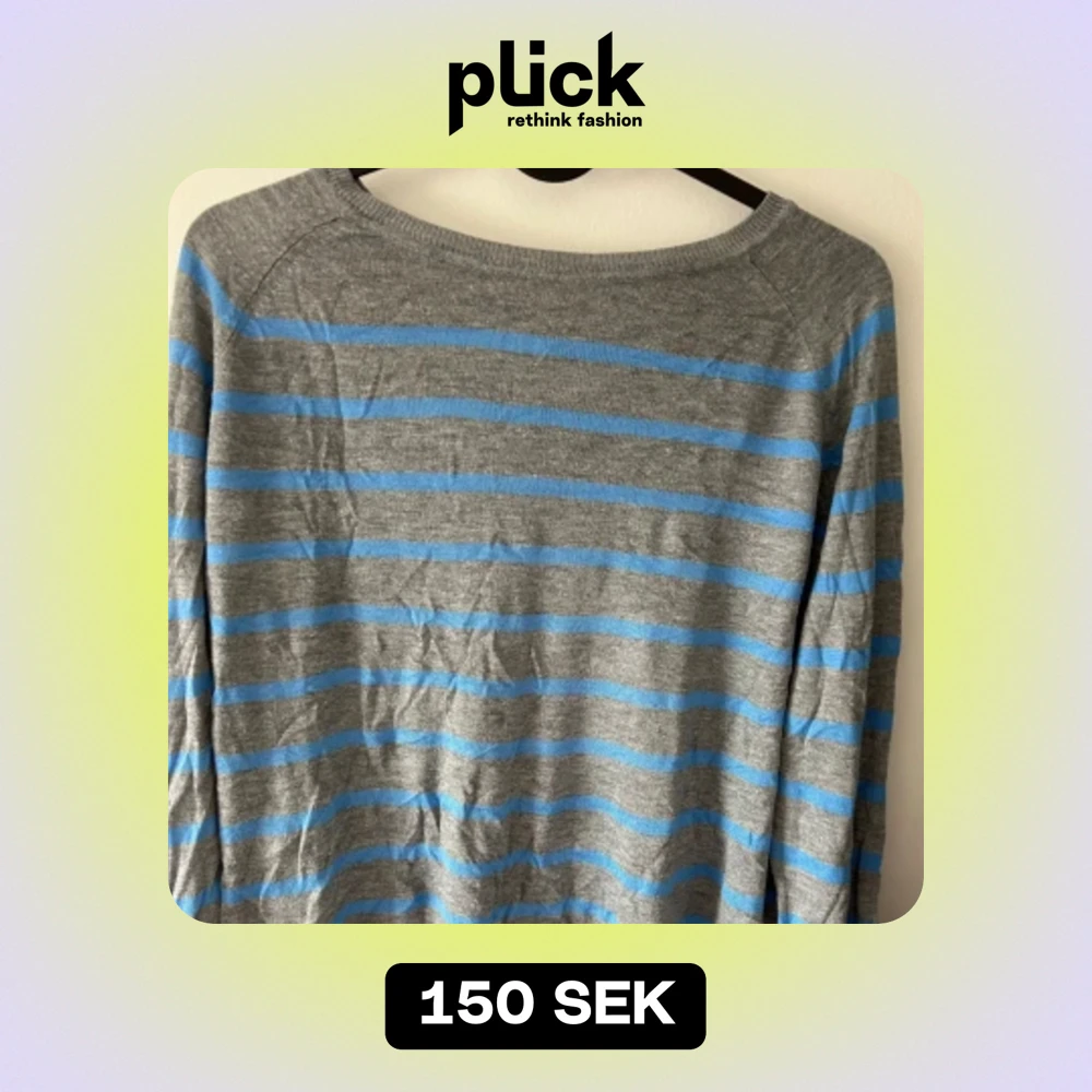 Säljer en snygg grå tröja med blå ränder. Den är perfekt för både vardag och lite kyligare dagar. Tröjan har långa ärmar och är superbekväm att ha på sig. Passar perfekt till jeans eller kjol!