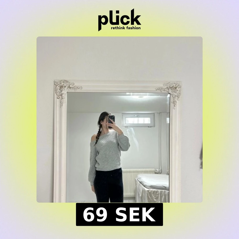 Säljer en stilren grå offshoulder tröja med ribbad struktur. Perfekt för en avslappnad look med en twist. Tröjan har långa ärmar och en bekväm passform. Tröjan är stickad med kliar inte alls ❤️
