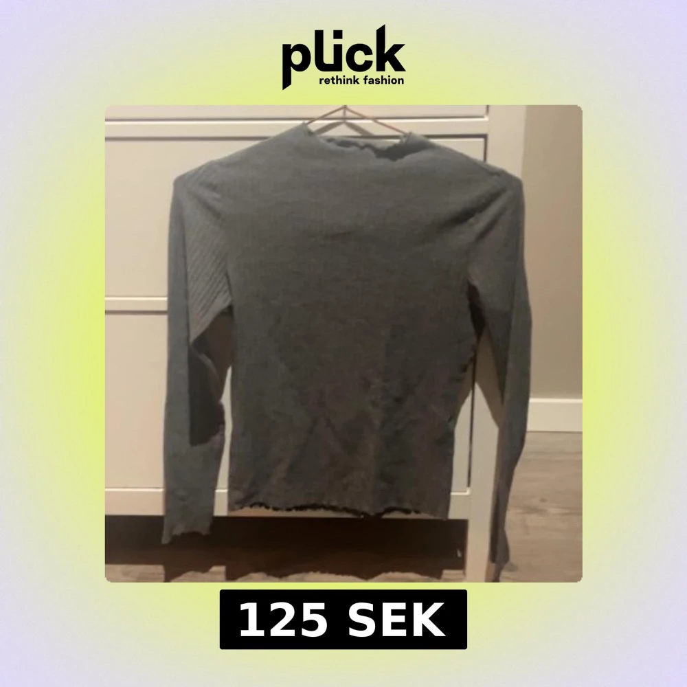 Säljer en stilren grå ribbad tröja med långärmad design. Perfekt för lager-på-lager under kyligare dagar. Enkel och mångsidig för olika outfits.