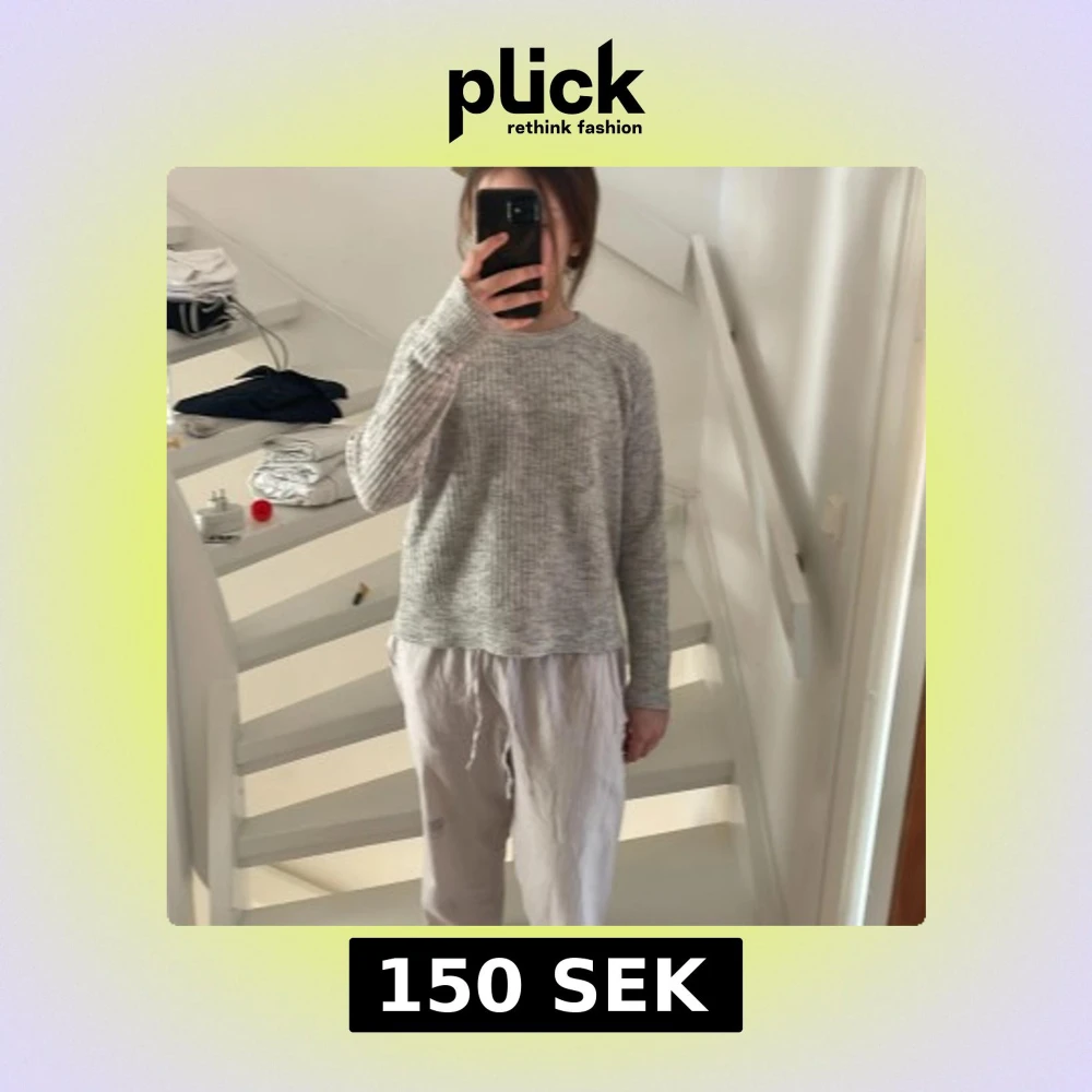 Säljer en stilren grå ribbad tröja med långa ärmar. Perfekt för en avslappnad look. Tröjan har en rund halsringning och är gjord i ett mjukt material som känns skönt mot huden.